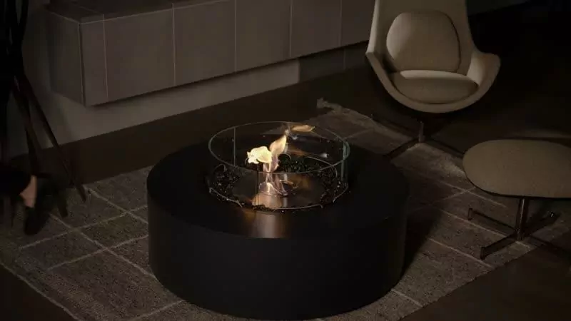 Une table cheminée aux courbes élégantes qui rassemble l’amitié et le feu